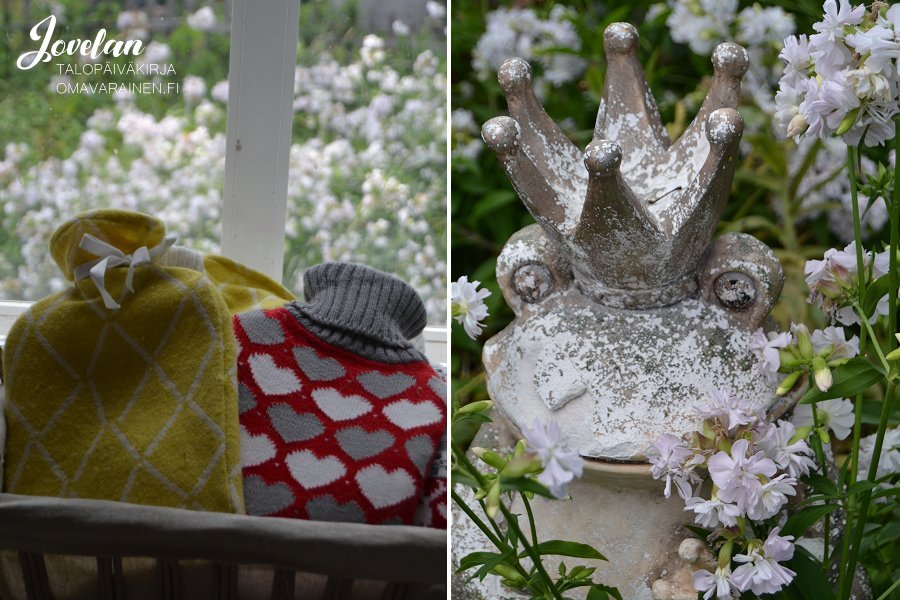 Täytyypi taas kerätä ja kuivata sieman rohtosuopayrttiä talteen talveksi ja tehdä vielä toinen satsi pyykkinestettä, jotta saa pesaistua myös lampaanvillatossuja. Sitten saakin syksy saapua aikanaan villaisten osalta - kunhan ei pidä kiirettä. Vielä on paljon kesää nautittavana!